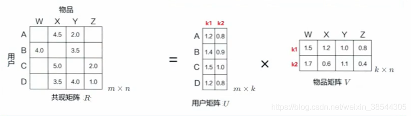 优点:(1)泛化能力强,在一定程度上接近了数据稀疏的问题。(2)空间复杂度低,k远小于n和m(3)更好的扩展性和灵活性,矩阵分解的最终产物是用户和物品隐向量,这其实与深度学习中的Embedding思想不谋而合,因此矩阵分解的结果也非常便于与其他特征进行组合与拼接,并便于深度学习网络进行无缝结合。
