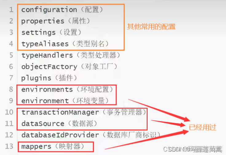 官方建议命名为mybatis-config.xml,核心配置文件里可以进行如下的配置: