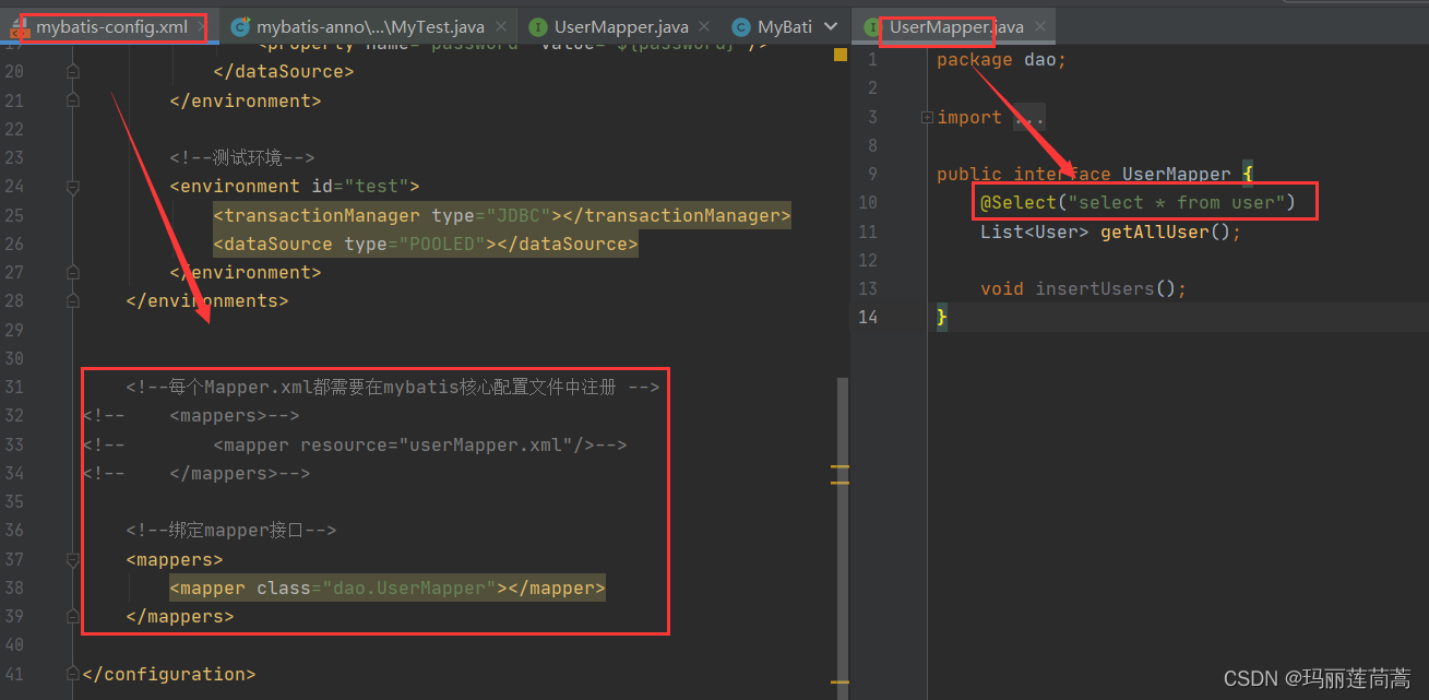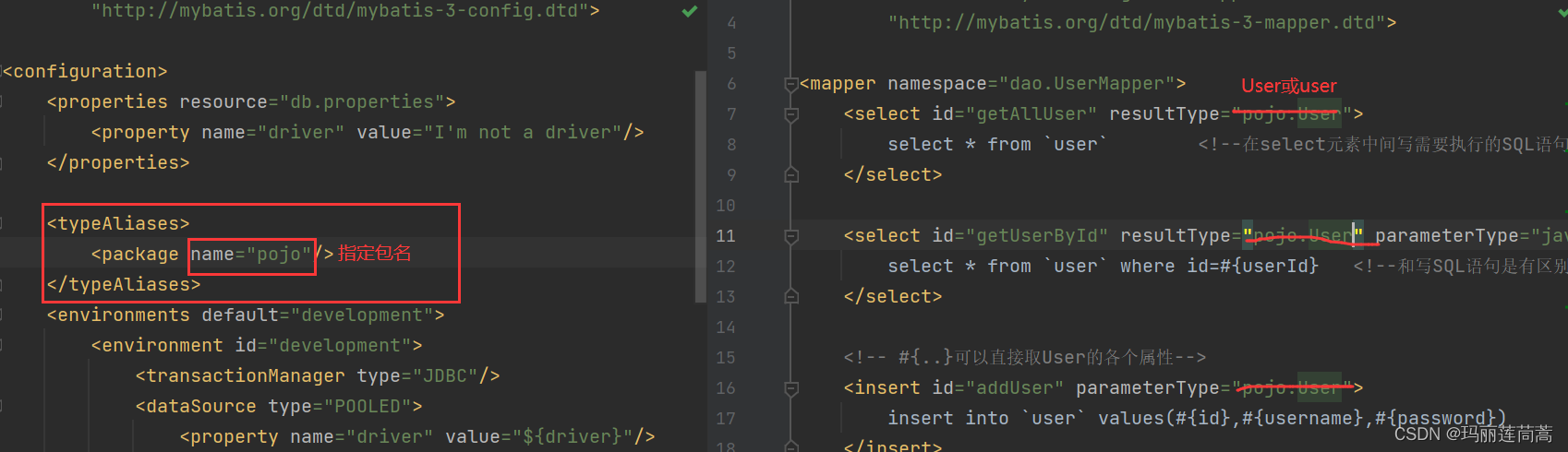 - UserMapper.xml文件和UserMapper接口必须同名