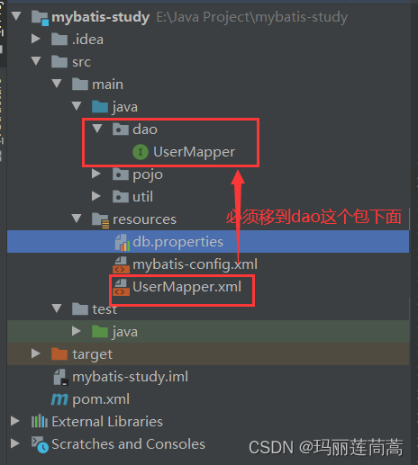 - UserMapper.xml文件和UserMapper接口必须在同一个包下