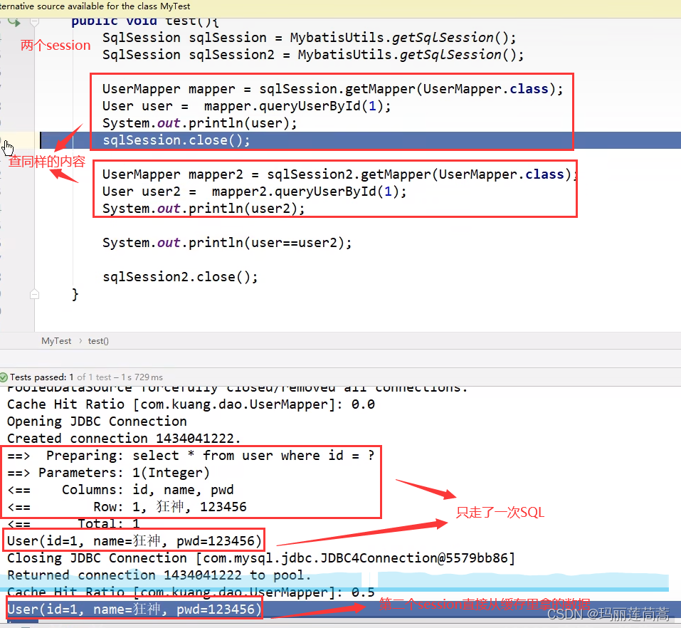 - 用完之后需要赶紧关闭 sqlSession.close() ,否则会占据资源