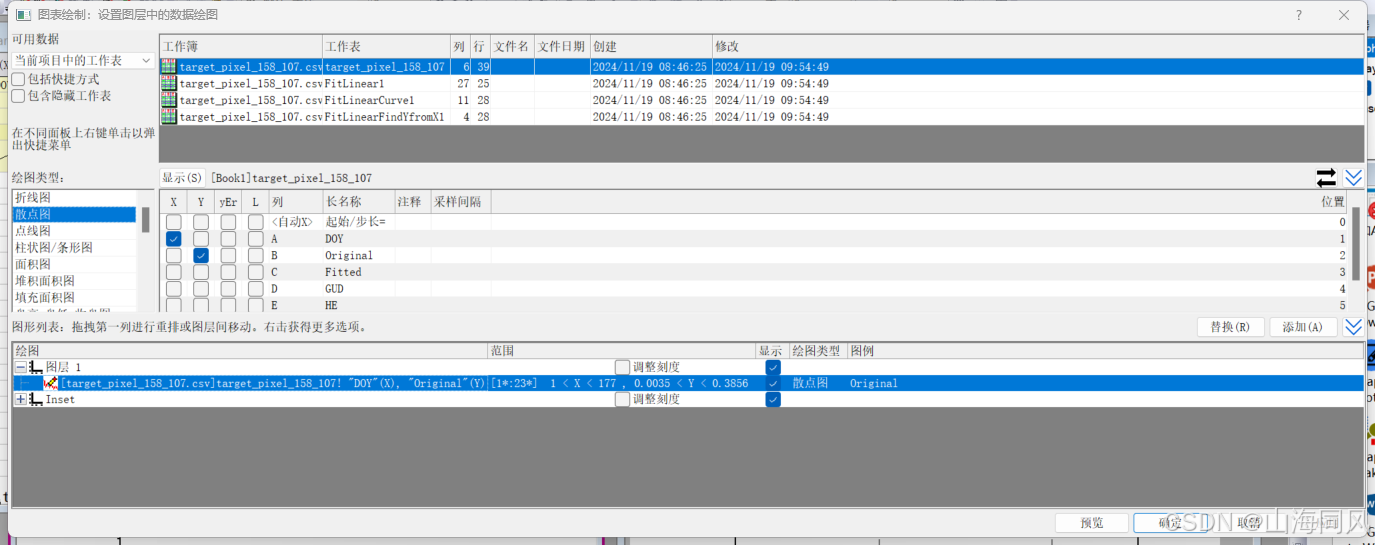现在我们有1,2个图层,双击1图层唤出图层内容界面,点击图表绘制,然后选择x、y数据,最后点击添加完成制图,步骤如下图。