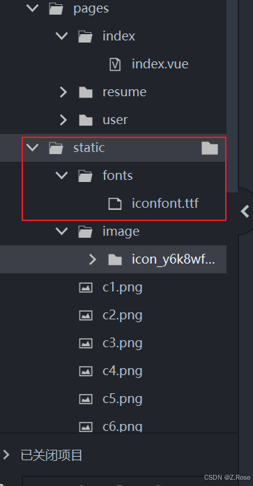 解压压缩包,将iconfont.ttf文件复制,粘贴到static静态文件中(可以先创建一个fonts目录存放)