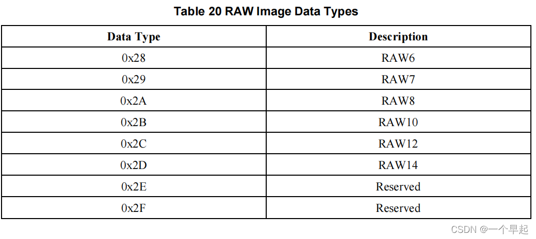 目录1.Data Type Classes1.1.Synchronization Short Packet Data Types1.2.Generic Short Packet Data Type Codes1.3.Generic 8-bit Long Packet Data Types1.4.YUV Image Data Types1.5.RGB Image Data Types1.6.RAW