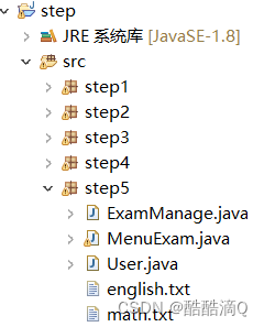 提示:java项目名为step,包为step5,包含3个java文件、两个txt文件。(前面几个包都不用看,也不用建,是我用来测试的)
