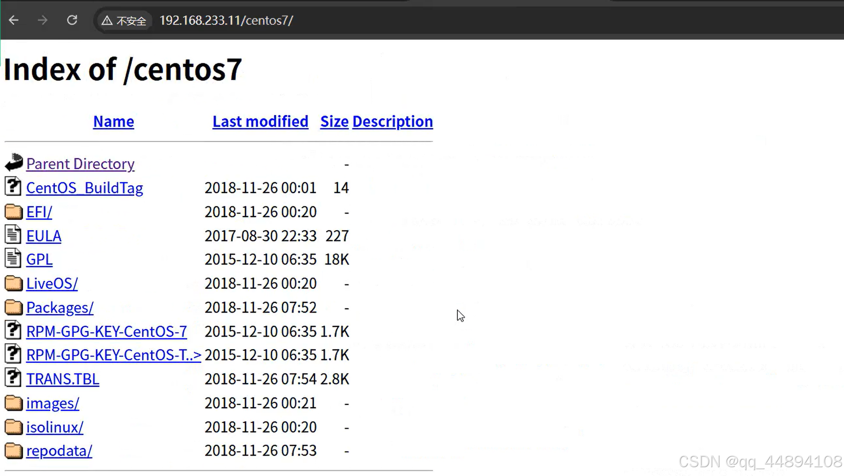 mount /dev/cdrom/ /var/www/html/centos7 #镜像文件挂载到新建的centos7目录