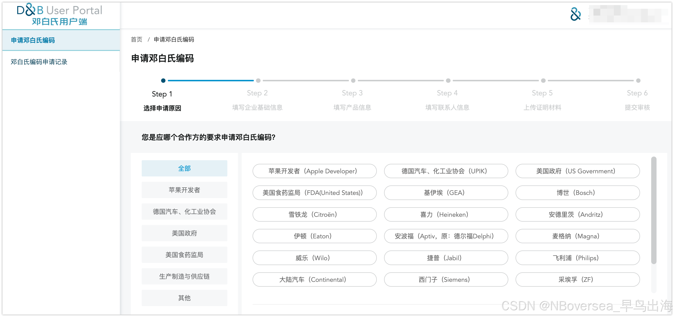 注册成功后,进入邓白氏用户端,选择Apple Developer(苹果开发者),进入下一步。