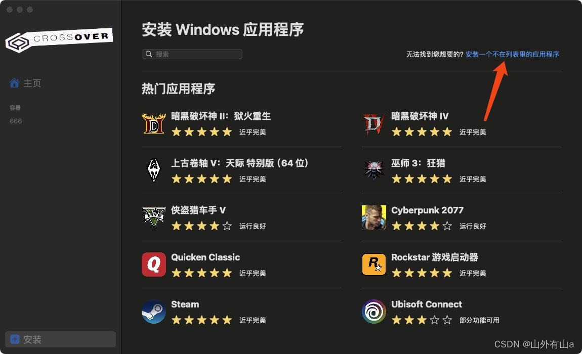 打开crossover软件:在安装完成后,您可以在应用程序文件夹中找到Wine图标并打开它。