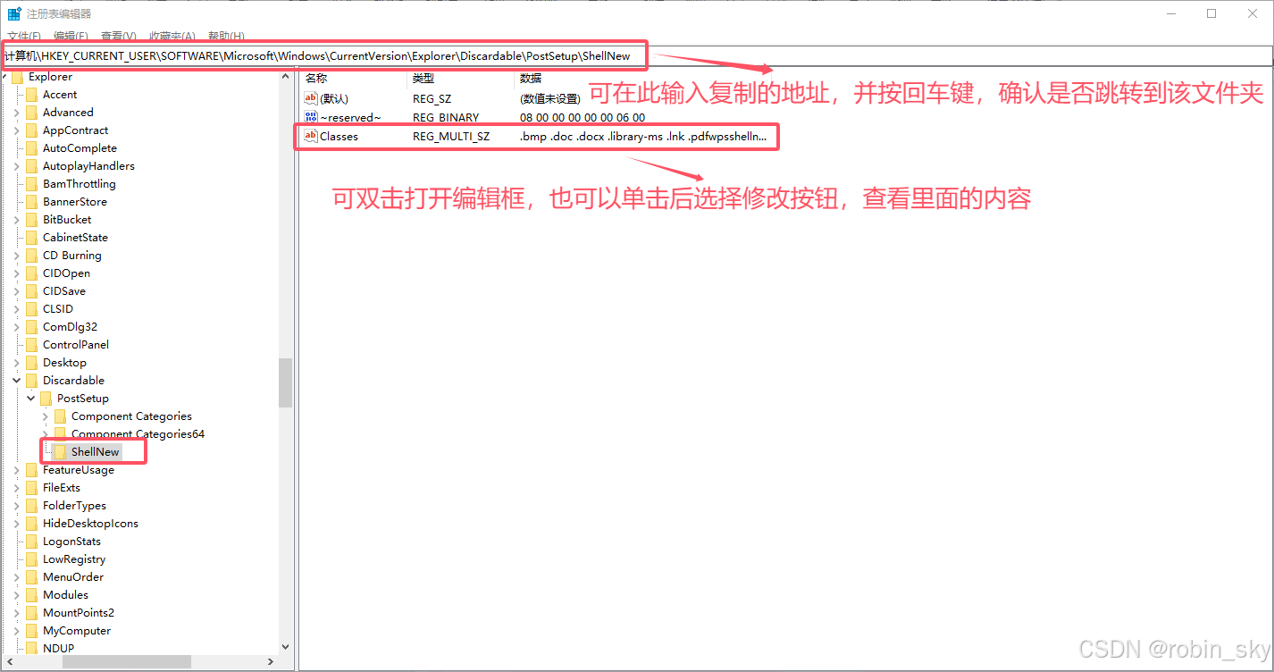 计算机\HKEY_CURRENT_USER\Software\Microsoft\Windows\CurrentVersion\Explorer\Discardable\PostSetup\ShellNew