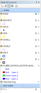 2、解锁方式一为:在table ofcontents下面的几个图标中(按绘制顺序流出,按源列出,按可见性列出,按选择列出,选择),利用<按可见性列出,或者按选择列出>便可以设置回去: