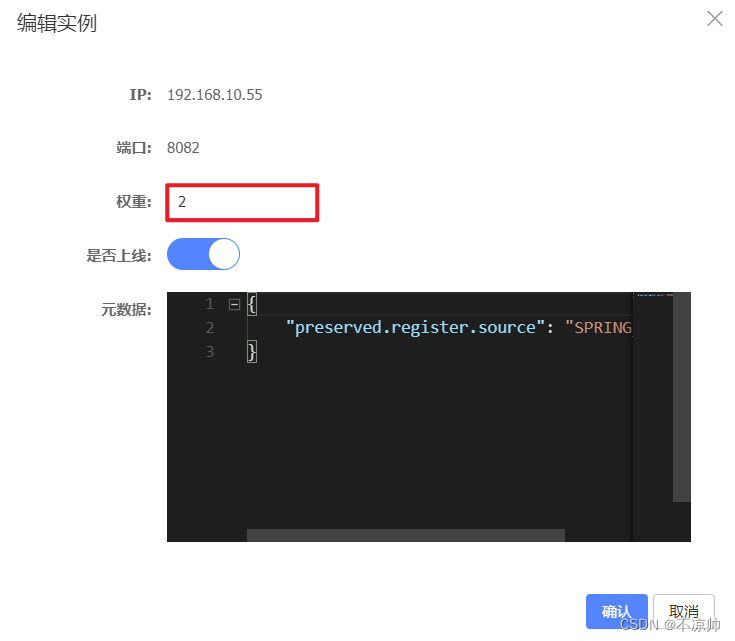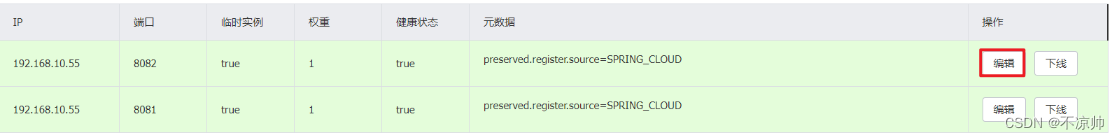 在nacos控制台,找到user-service的实例列表,点击编辑,即可修改权重: