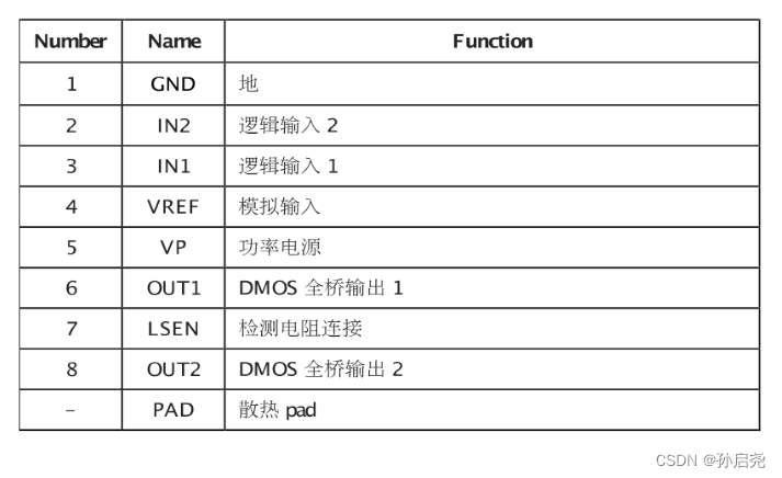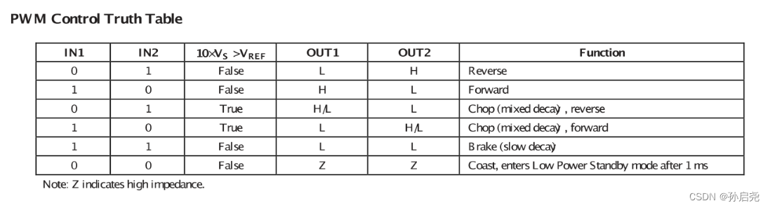| IN1 | IN2 | 电机驱动状态 |