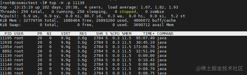 查看指定进程的信息,使用top -p 进程id,查看指定进程下的所有线程信息,可以使用top -H -p 进程id