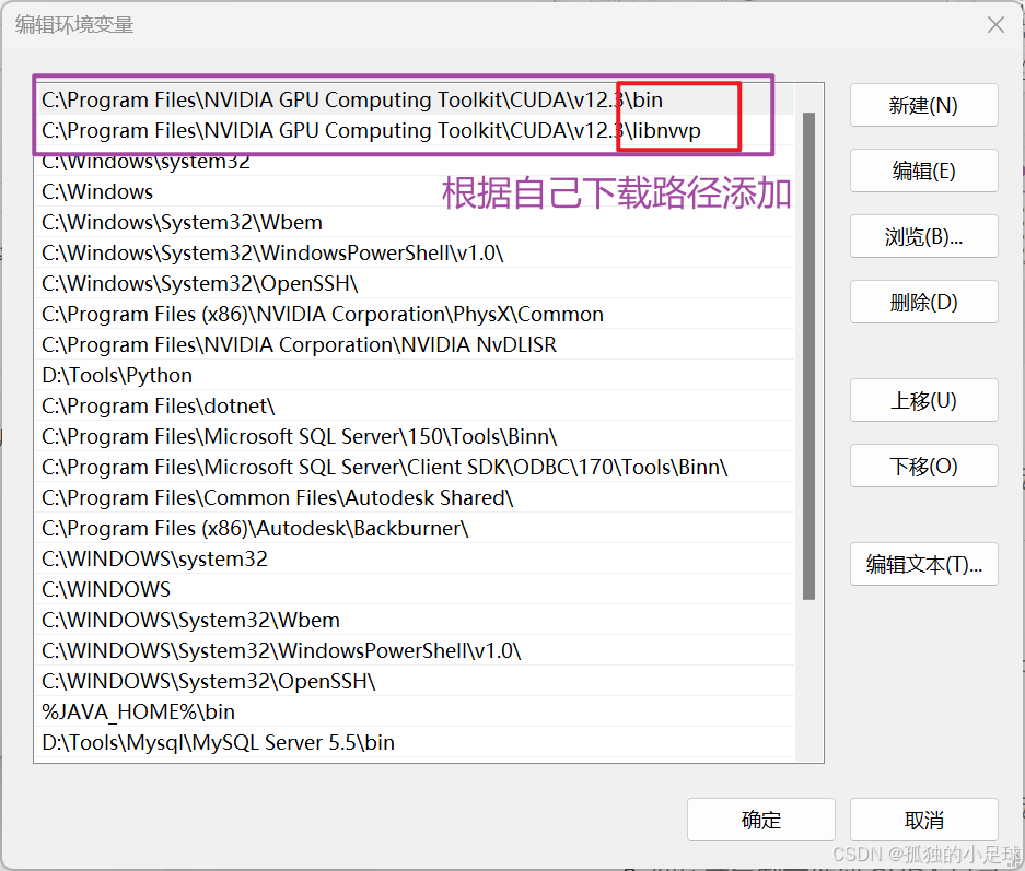 安装完成后,将 CUDA 路径添加到环境变量: