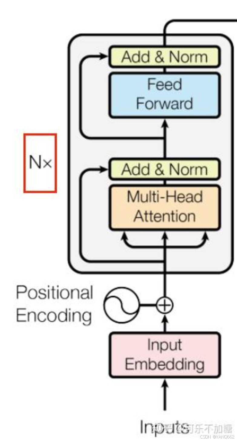 在第一部分已经说过,encoder模块由 input Embedding (输入嵌入) 、Positional Encoding(位置编码) 、Multi-Head Attention 多头注意力机制和 Feed Forward 前馈网络四部分构成,下面我们分开介绍各部分。