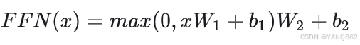 # FeedForward dimension (两次线性层中的隐藏层 512->2048->512,线性层是用来做特征提取的),当然最后会再接一个projection层