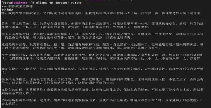 当 DeepSeek-r1模型拉取完成后,输入该命令即可在对应的命令行界面(Linux的终端)中,直接与模型进行交互。