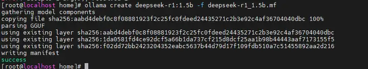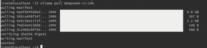 系统会开始从相应的镜像源拉取 DeepSeek-r1 模型,并显示下载和构建镜像的进度。等待拉取和构建完成。