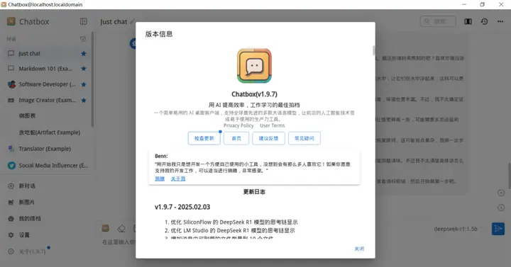 打开可视化界面:./Chatbox-1.9.7-x86_64.AppImage --no-sandbox
