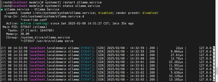 如上,ollama安装成功且服务配置成功。