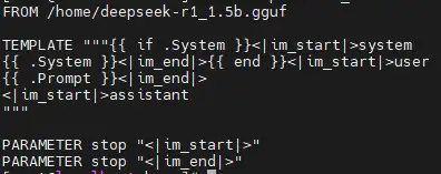(1)目标机器在导入模型时须先准备好ollama环境,准备好导出的gguf文件,并且编辑好Modelfile文件,编辑如下内容: