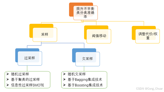 提升不平衡类分类准确率的方法有三大类:采样、阈值移动、调整代价或权重。