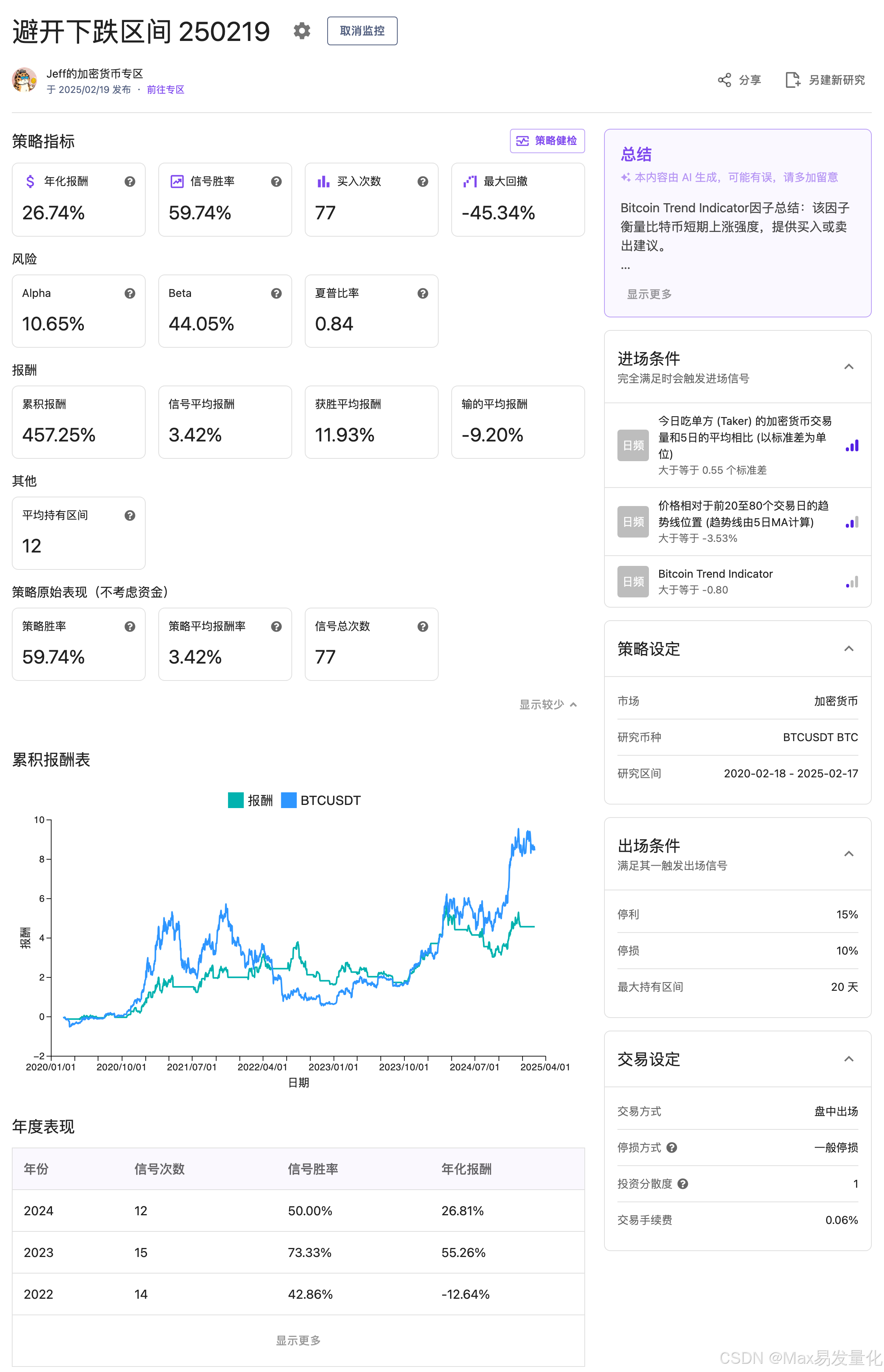 在加密货币市场剧烈波动的环境下,如何通过量化工具精准识别趋势拐点?一起解析机构常用策略「避开下跌区间」的因子逻辑,带您掌握用数据对抗市场不确定性的方法论。