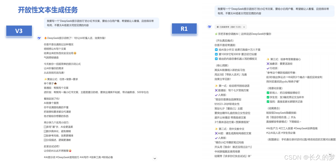 • 深度思考(R1):目标清晰,结果可以模糊(推理)