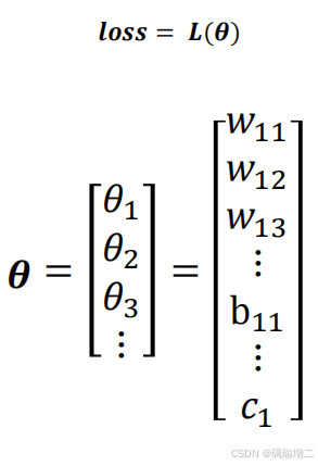 𝜽用来代表神经网络中所有可以训练的参数,𝒍𝒐𝒔𝒔 = 𝑳(𝜽)表示loss函数