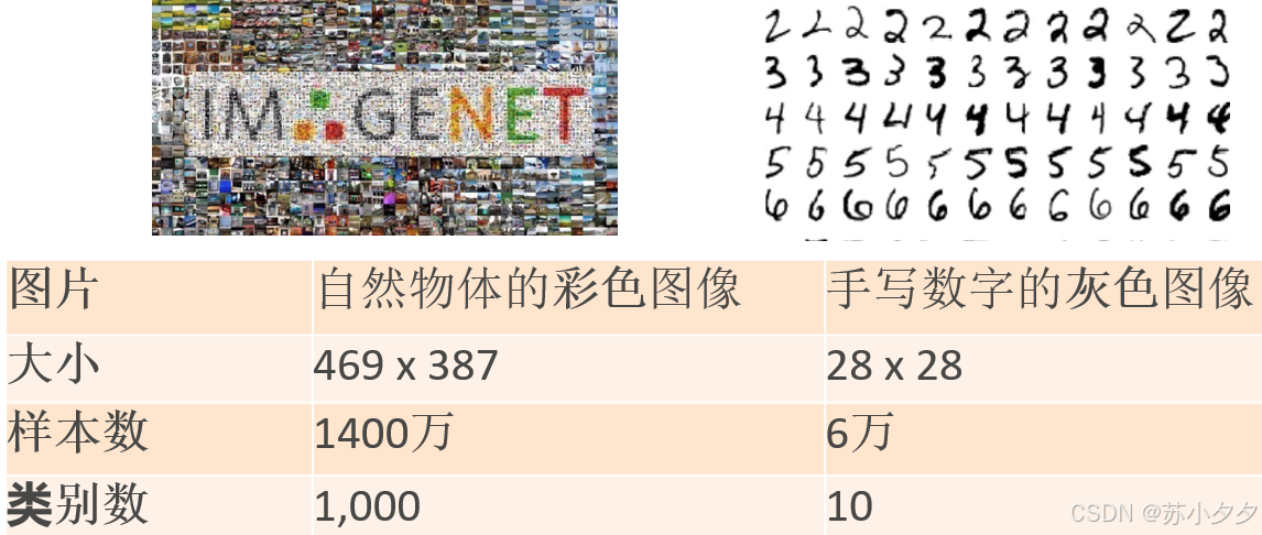 ImageNet数据集相对于LeNet,图片由灰色变为彩色,数据大小、样本数、类别数也相对高出不少。