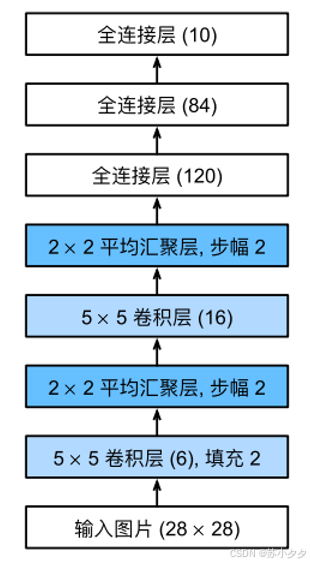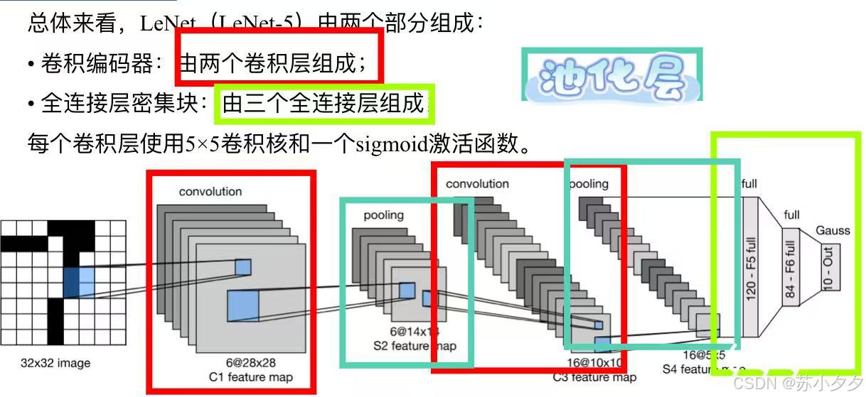 每个卷积层使⽤5×5卷积核和一个sigmoid激活函数