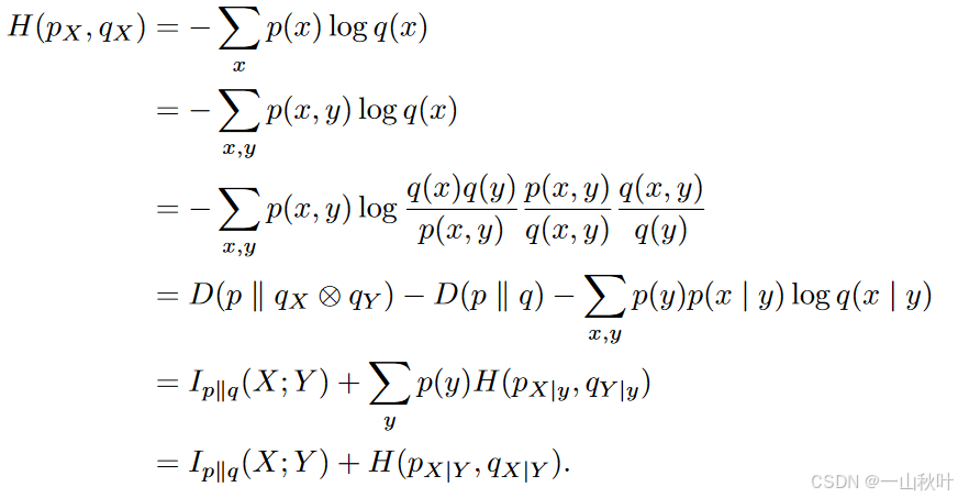 在边际分布下的KL散度,表示当两者独立时,模型预测和实际分布之间的差异。也可以将互信息分解成交叉熵的计算,即