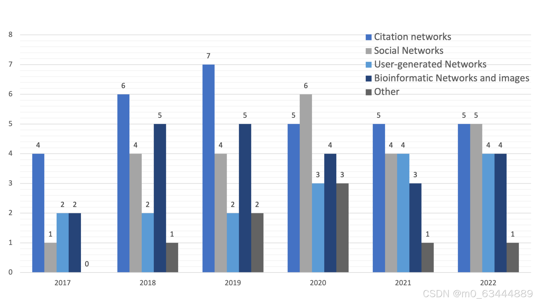 图4.被评审论文中数据集的逐年发展。