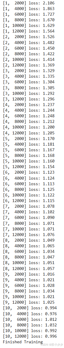 下面的代码是使用pytorch框架训练神经网络的循环,用于在训练集上对神经网络进行多轮训练,并在训练过程中监控损失值
