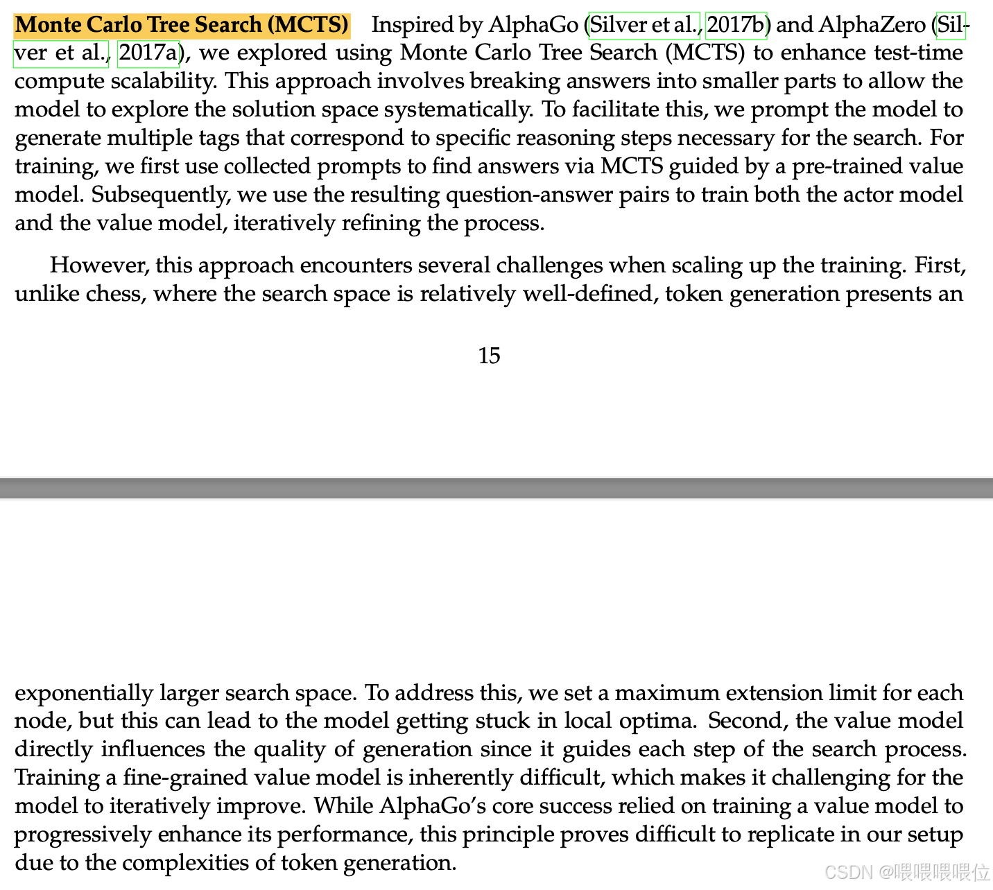 另外就是MTCS蒙特卡洛搜索树相关的算法,但是这个搜索树会让整个模型不断的探索,微调也很困难,也很难去做大规模的扩展。O1也是一样的,采用了MTCS,导致训练过程变得非常的复杂,算法越复杂越不利于scale out或者scaling law,只有scale out或者scaling law才会使我们的模型效果越来越好。(这里和当年的bert、T5为什么没有gpt1、2、3效果好很像,因为前者的encoder、decoder架构整体训练越来越复杂,纯粹采用decoder架构更方便)