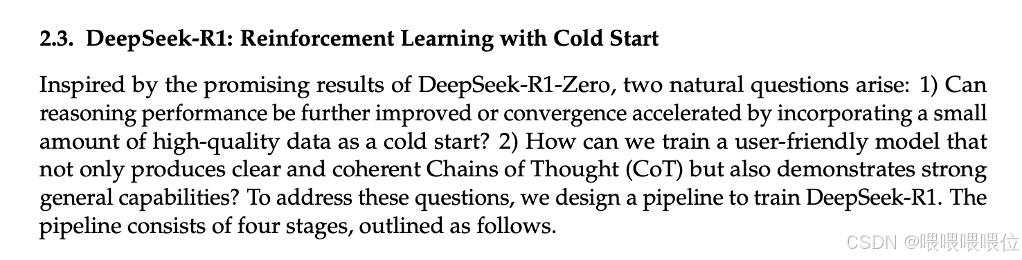 接下来介绍解决方案:冷启动强化学习(Reinforcement learning with Cold start)和多阶段训练。