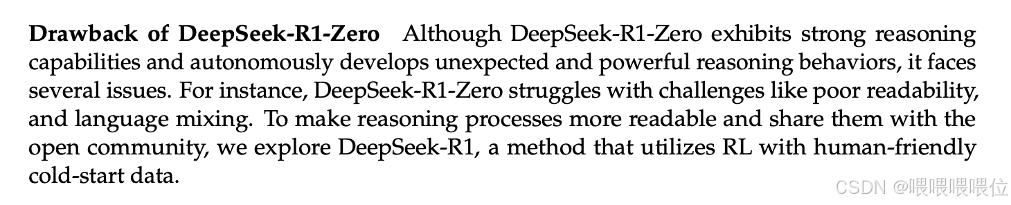 但是这样的r1-zero也有缺点:不太好的可读性,语言会混杂到一起等。