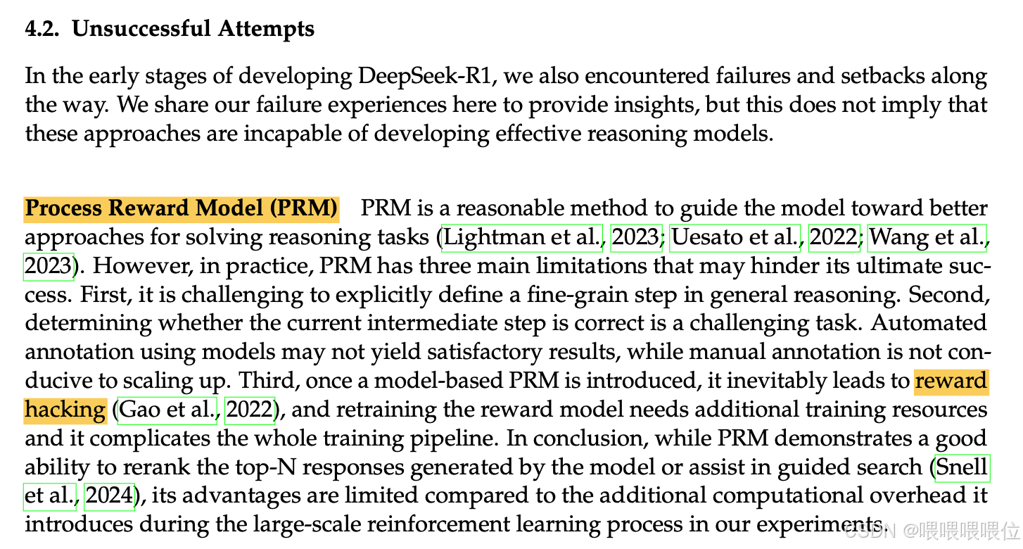 中间是一些实验,这个我们等到复现时候再来细细考量。最后跳到unsuccessful attempts,特别是过程奖励的尝试。