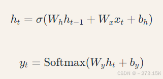 - ℎ𝑡ht:当前隐藏状态,𝜎σ:激活函数(如 Tanh)。