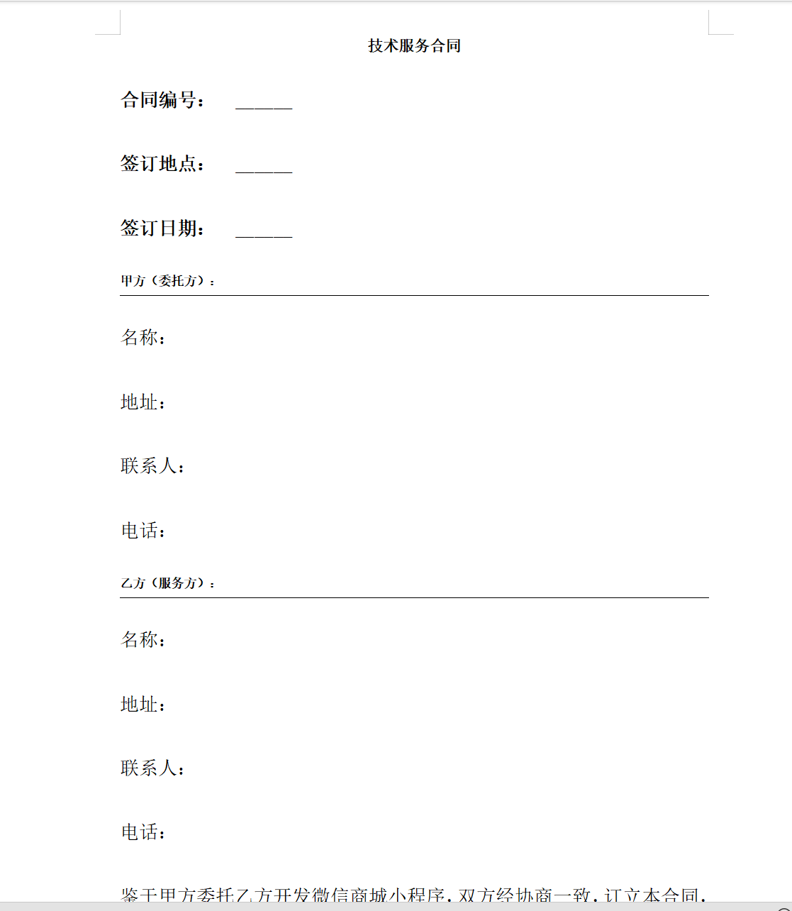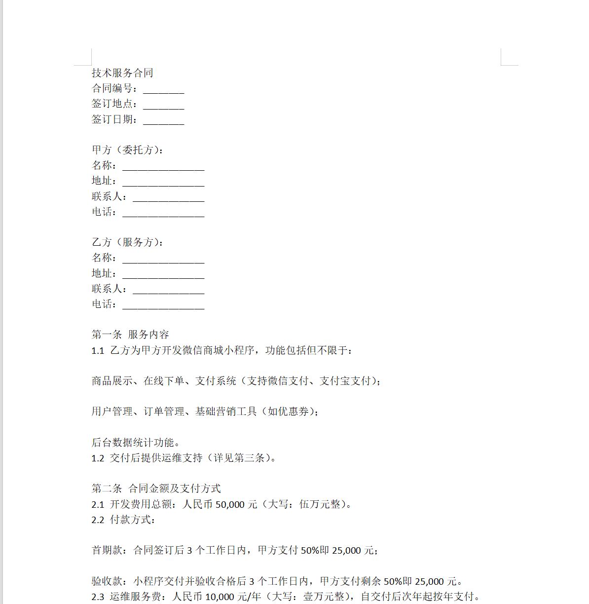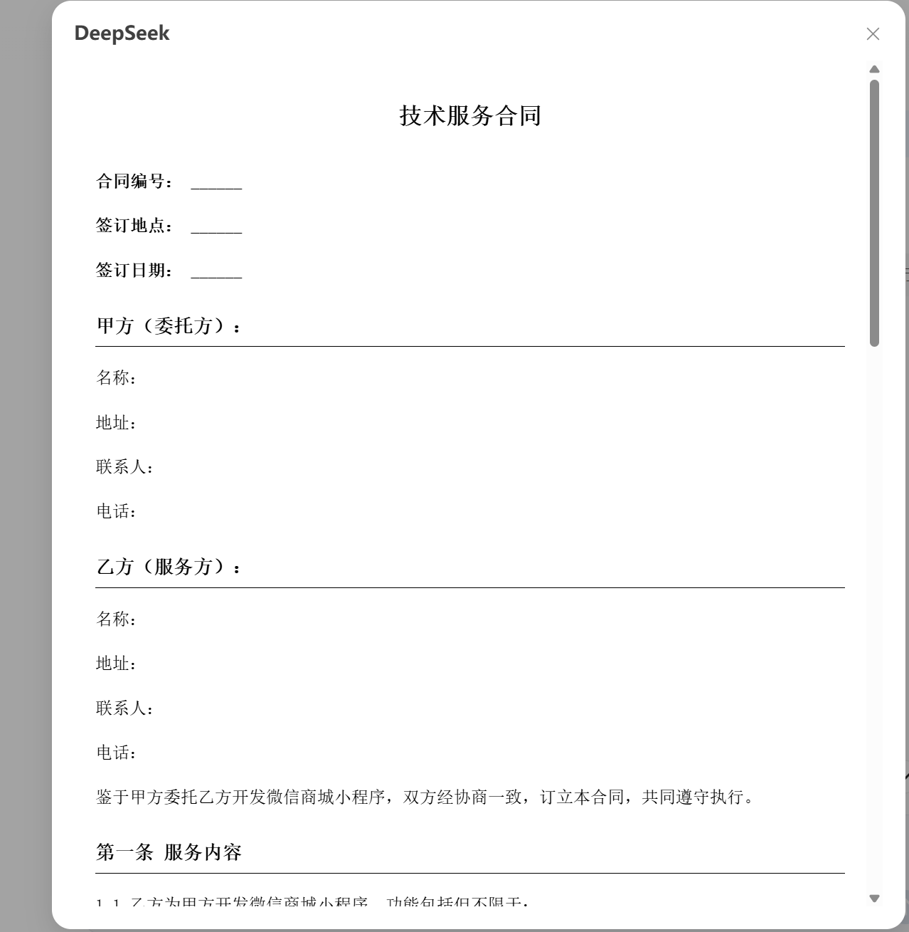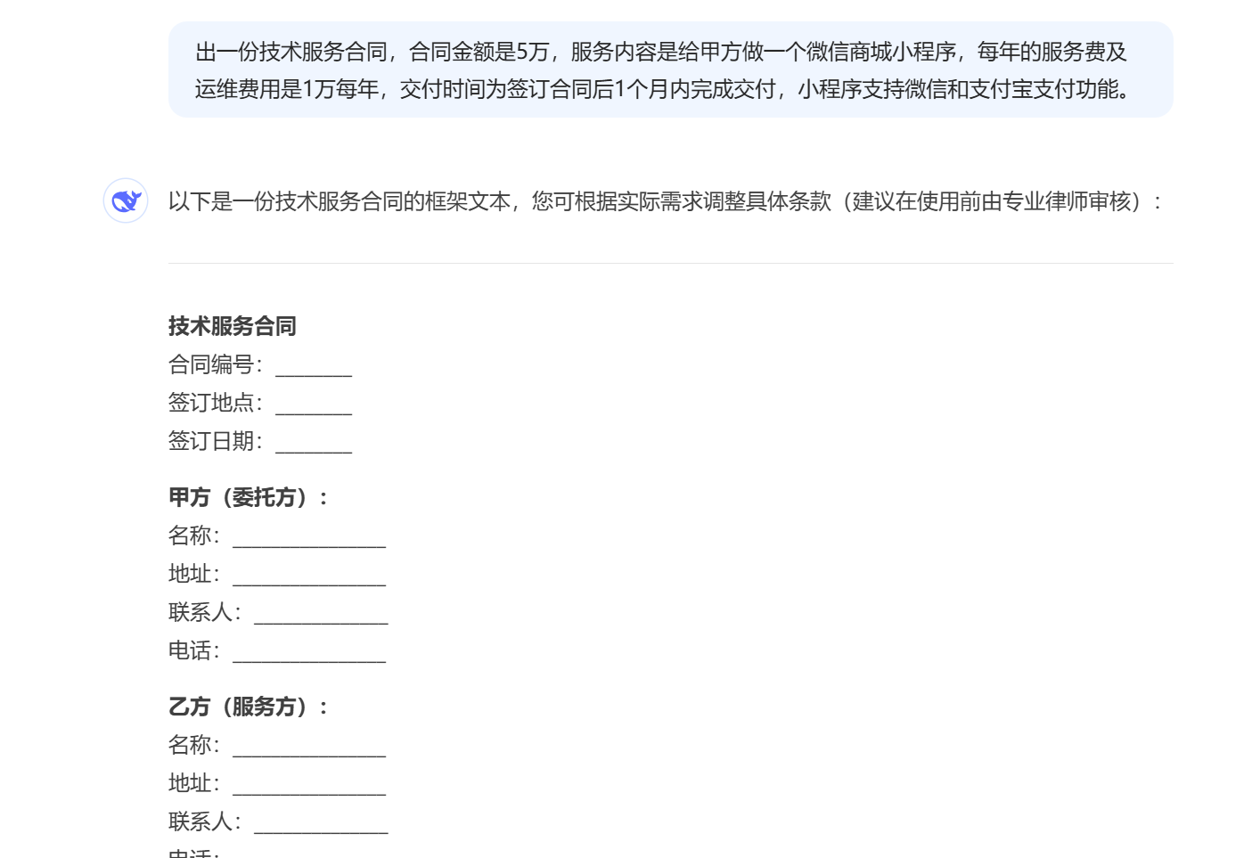以下用AI出一份技术服务合同示例:
