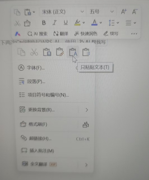 当然也试一下另外一种方式,在文档中只粘贴文本:
