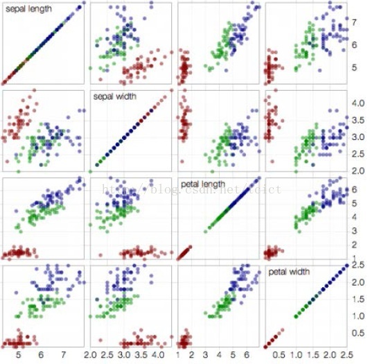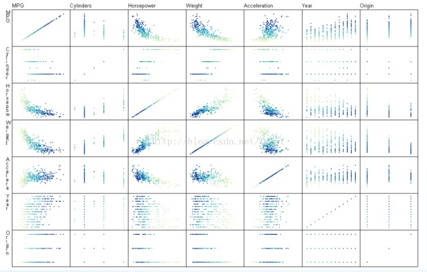 对于N维数据,使用N2个二维散点图逐一表示N个属性之间的两两关系