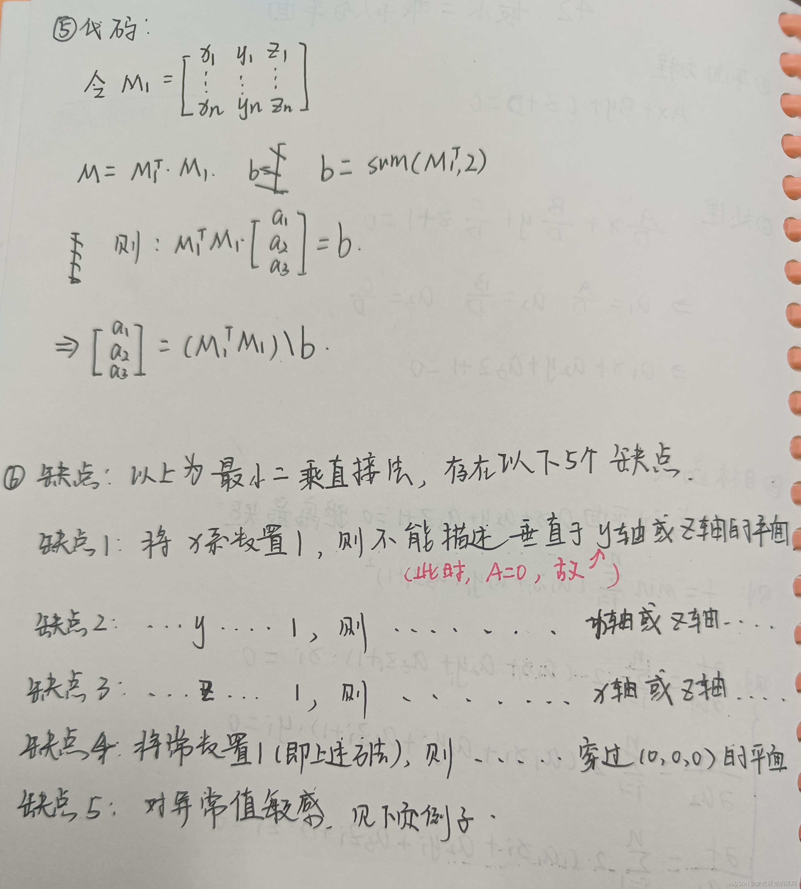 以下为今天学习的笔记,内容包括:最小二乘法平面拟合理论推导和代码撰写