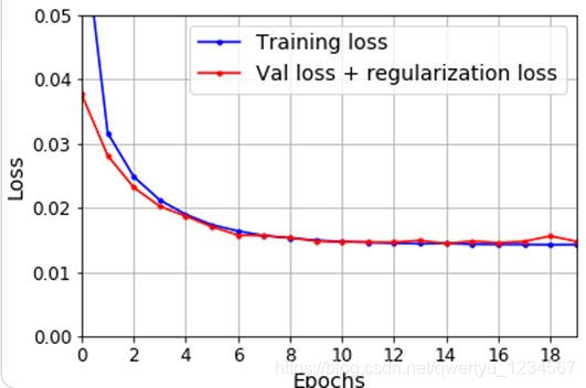从上图可以看到,计算验证集损失时如果考虑的正则项损失,那么就改善了两者的差别。