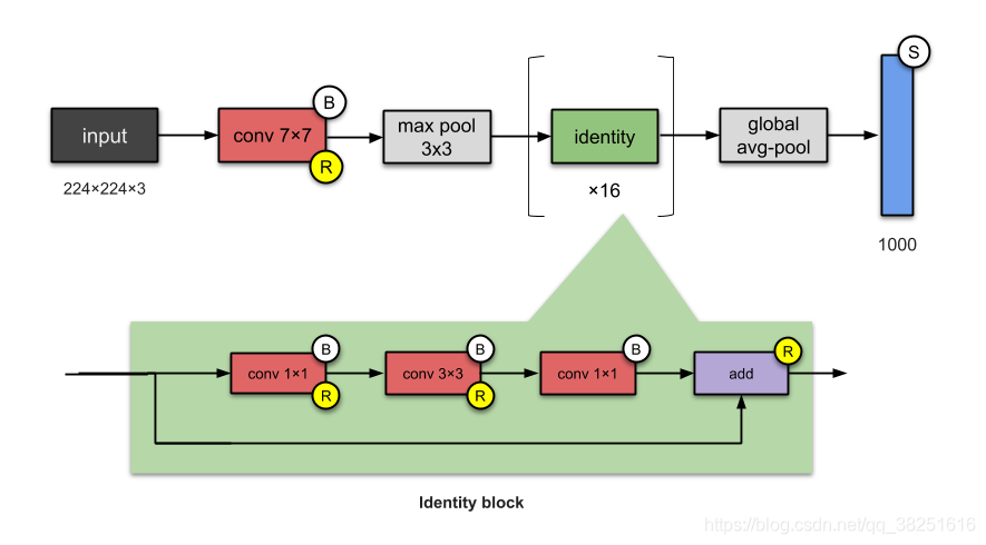 ResNets 的基本构建块是 conv 和 identity 块。因为它们看起来很像,你可以像这样简化 ResNet-50(不要为此引用我!):