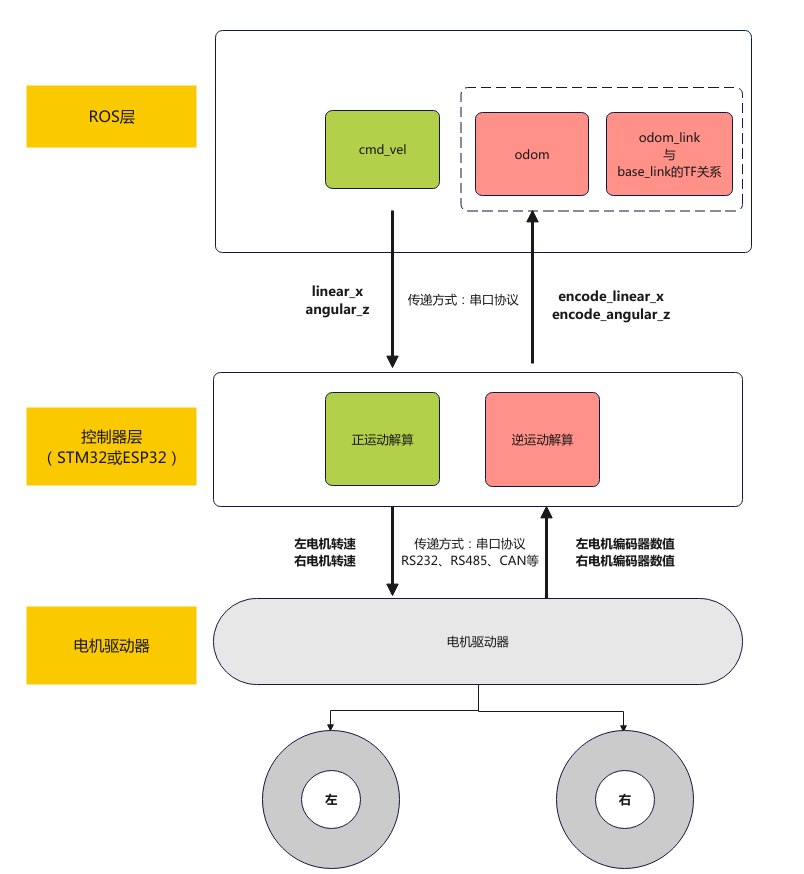 关于 move_base 的输出 cmd_vel 如何变为小车电机的控制指令,可以参考: