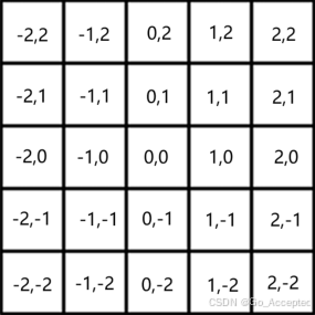 x 和 y 是相对于高斯核中心的整数距离