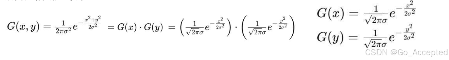 为了降低计算次数,我们可以利用二维高斯函数的数学特性 —— 可分离性,即 二维高斯函数可以表示为两个一维高斯函数的乘积,从而大幅减少计算量