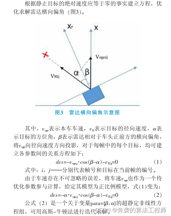 雷达自动校准的原理和方法可参考这篇论文《前向毫米波雷达系统自动校准功能》,作者朱龙,下图为原理论述。