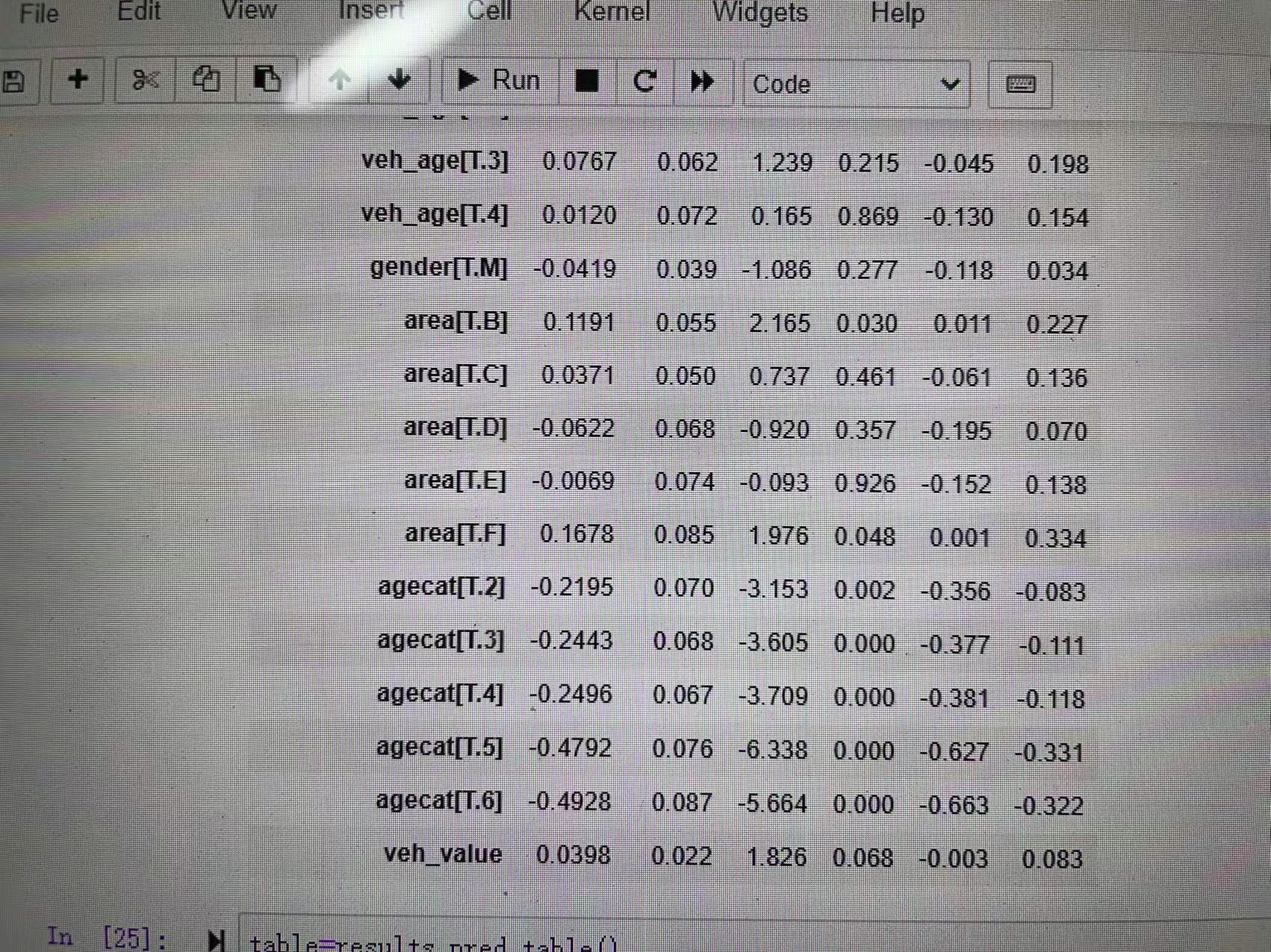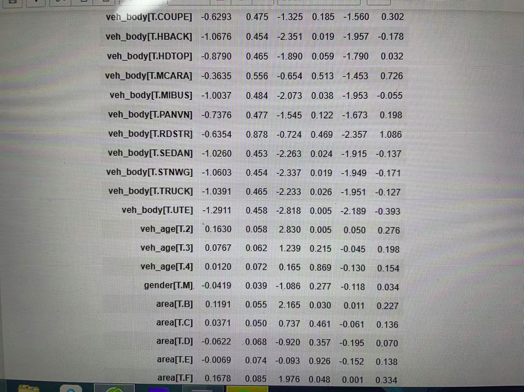 y_test,x_test=dmatrices('clm~veh_value+veh_body+veh_age+gender+agecat',